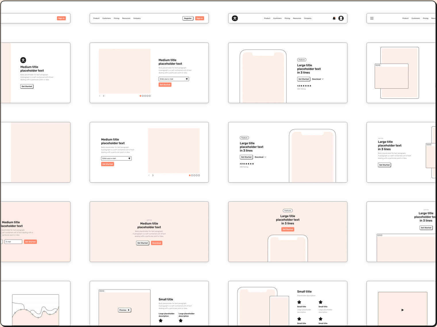Create diverse and beautiful wireframes utilizing a minimal weight style guide.